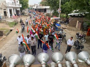 फोटो आकोला। गाँव में तिरंगा यात्रा निकालते अधिकारी।